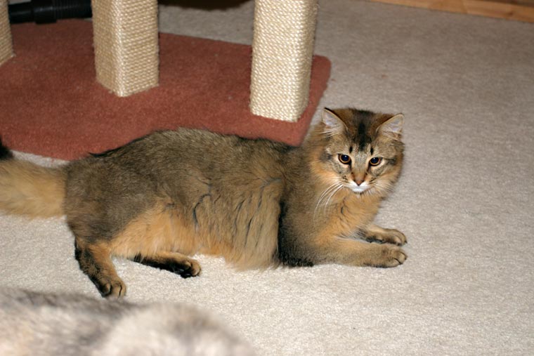 Usual Somali boy at 9 months Nominated for Best in Show at his 1st show, the North of Britain Longhair & Semi Longhair in December 2005 He won Purriest Cat at the Somali Cat Club Show in March 2006